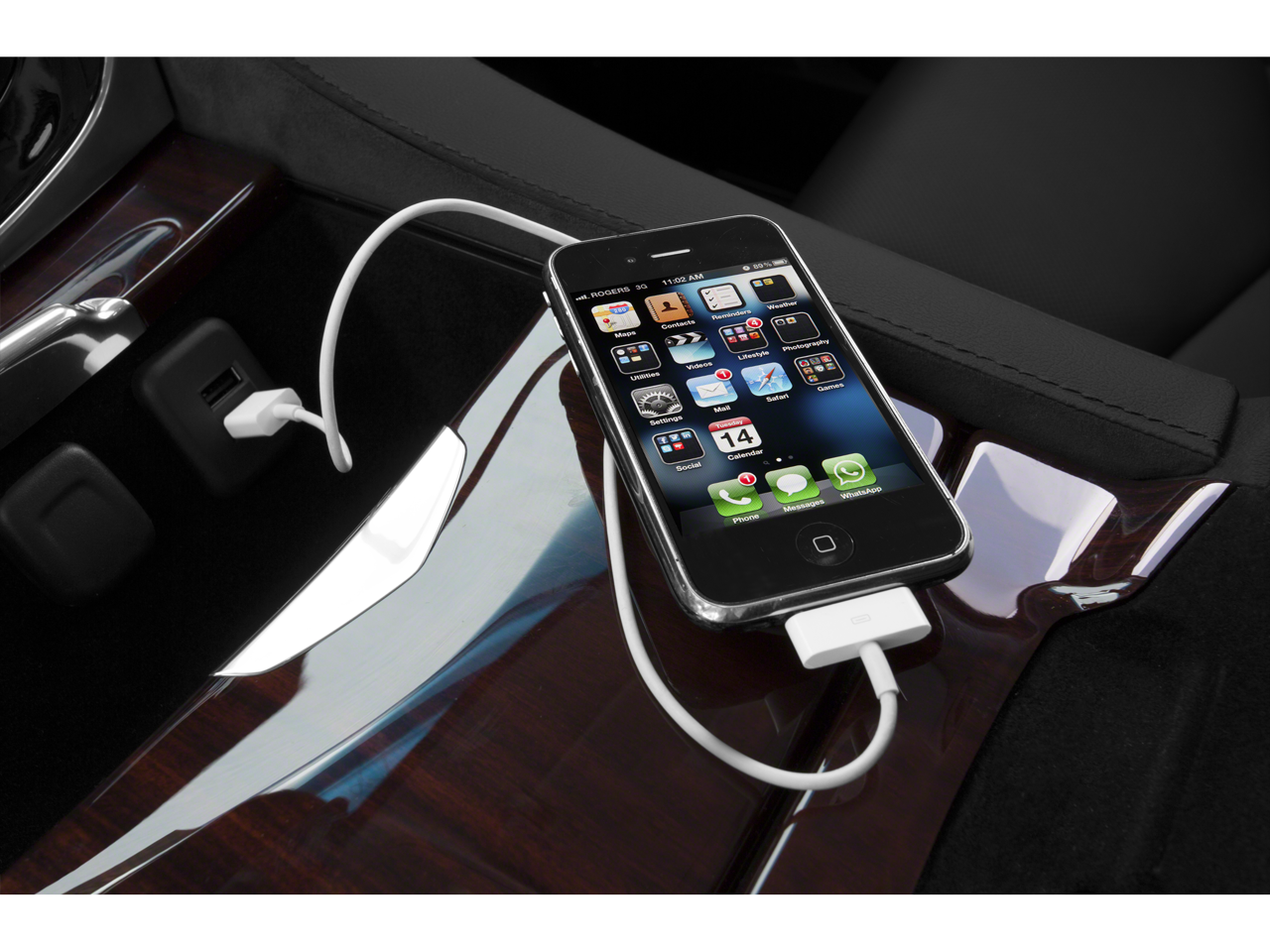 - Console, floor with covered storage, large and small storage bins, dual cup holders, electronic climate controls and second row heated seat controls (inside console: auxiliary power outlet, two USB ports, SD card slot and auxiliary audio port), 110-volt outlet and auxiliary power outlet on the backside of console