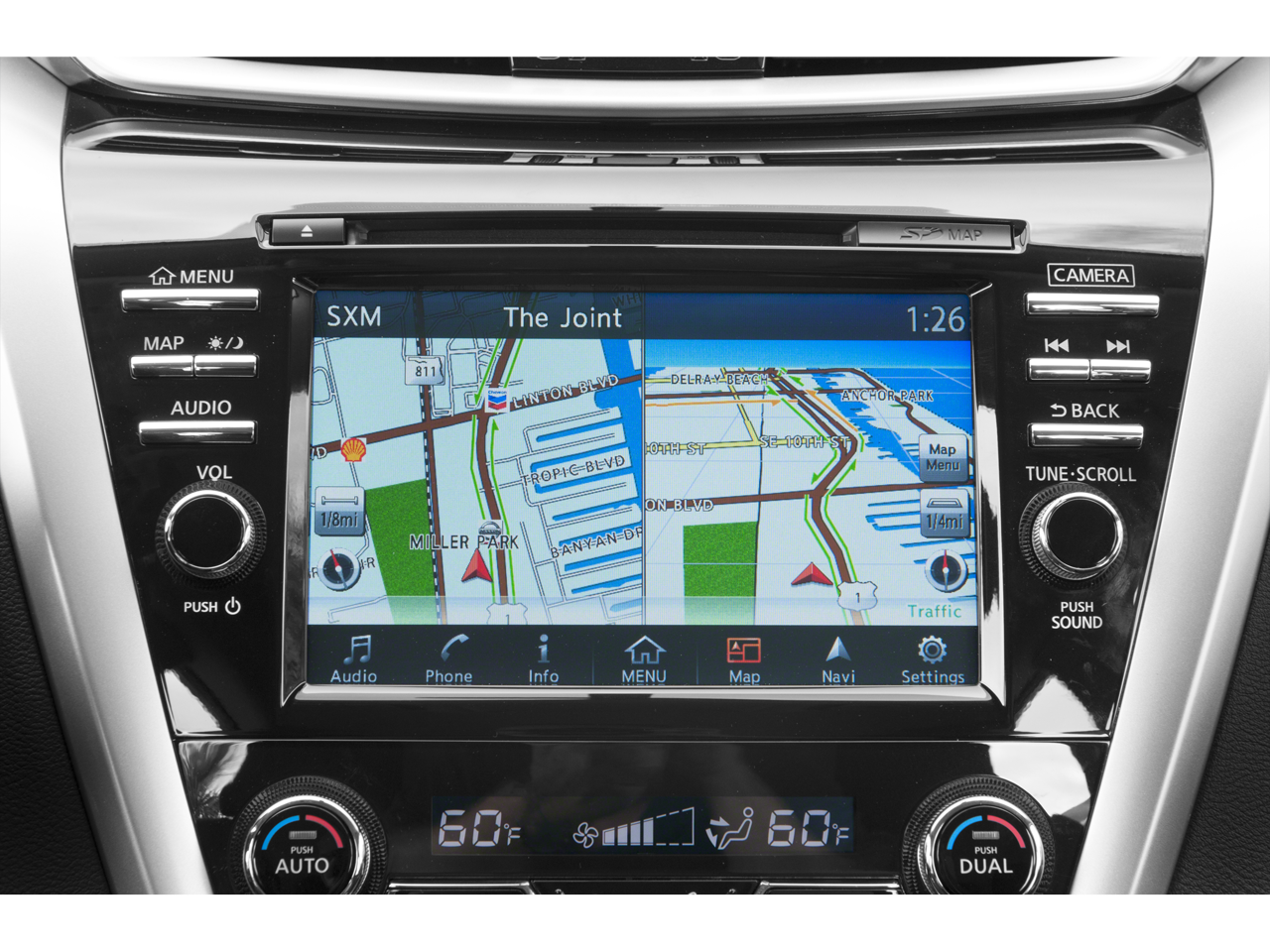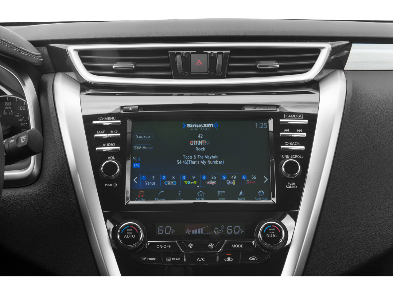 NAVIGATION PACKAGE Radio: AM/FM/CD Audio System w/Navigation, NissanConnect w/navigation and mobile apps, 8 color display w/multi-touch control, voice recognition for navigation and audio, SiriusXM Traffic, SiriusXM Travel Link, rear USB port and HD radio. Nissan S with Magnetic Black Metallic exterior and Black interior features a V6 Cylinder Engine with 260 HP at 6000 RPM*.