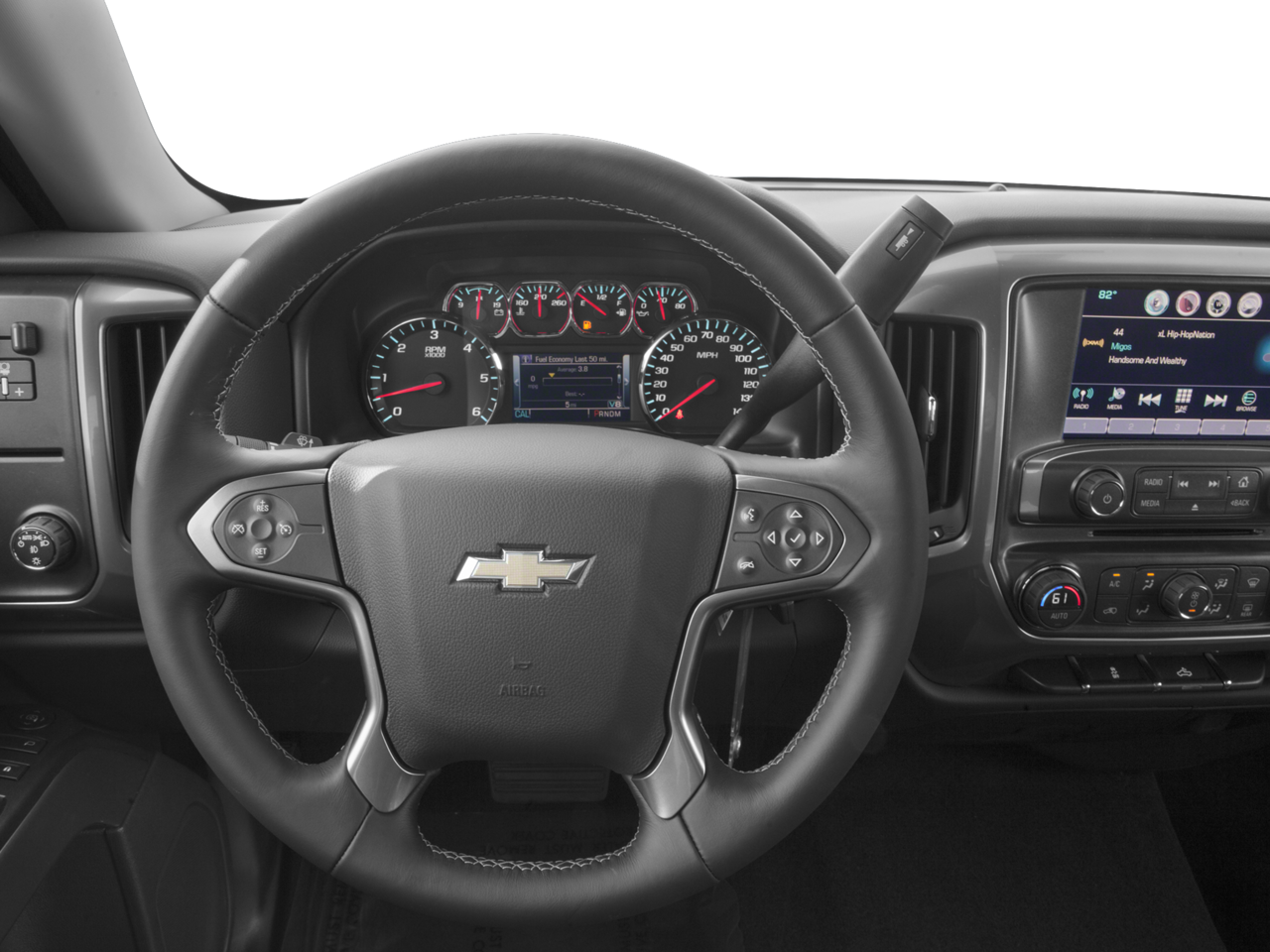 ALL STAR EDITION for Crew Cab and Double Cab, includes (AG1) driver 10-way power seat adjuster with (AZ3) bench seat only, (CJ2) dual-zone climate control, (BTV) Remote Vehicle Starter system, (UVC) Rear Vision Camera, (C49) rear-window defogger and (KI4) 110-volt power outlet (N37) manual tilt and telescopic steering column included with (L83) 5.3L EcoTec3 V8 engine.), ENGINE, 5.3L ECOTEC3 V8 WITH ACTIVE FUEL MANAGEMENT, DIRECT INJECTION AND VARIABLE VALVE TIMING includes aluminum block construction (355 hp [265 kW] @ 5600 rpm, 383 lb-ft of torque [518 Nm] @ 4100 rpm; more than 300 lb-ft of torque from 2000 to 5600 rpm), AUDIO SYSTEM, CHEVROLET MYLINK RADIO WITH NAVIGATION AND 8 DIAGONAL COLOR TOUCH-SCREEN, AM/FM STEREO with seek-and-scan and digital clock, includes Bluetooth® streaming audio for music and select phones; USB ports; auxiliary jack; voice-activated technology for radio and phone; featuring Apple CarPlay® capability for compatible phone. SEATS, FRONT 40/20/40 SPLIT-BENCH, 3-PASSENGER, AVAILABLE IN CLOTH OR LEATHER includes driver and front passenger recline with outboard head restraints and center fold-down armrest with storage. Also includes manually adjustable driver lumbar, lockable storage compartment in seat cushion, and storage pockets. (STD) Includes (AG1) driver 10-way power seat-adjuster with (PCM) LT Convenience Package, (PDA) Texas Edition or (PDU) All Star Edition.), REMOTE VEHICLE STARTER SYSTEM Includes (UTJ) Theft-deterrent system.), TRANSMISSION, 6-SPEED AUTOMATIC, ELECTRONICALLY CONTROLLED with overdrive and tow/haul mode. Includes Cruise Grade Braking and Powertrain Grade Braking (STD). Chevrolet LT with Summit White exterior and Jet Black interior features a 8 Cylinder Engine with 285 HP at 5300 RPM*.