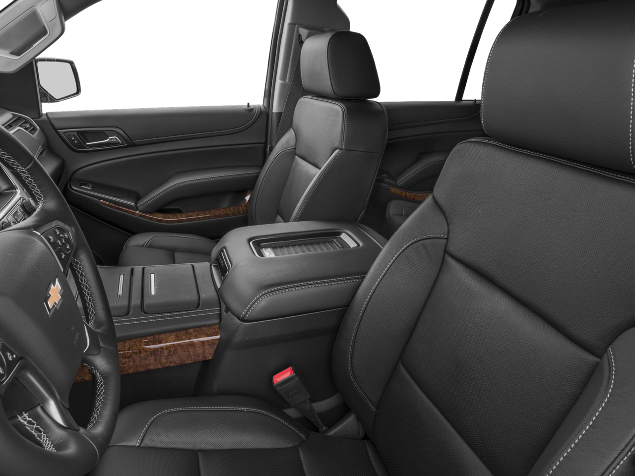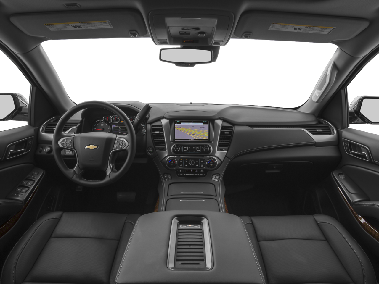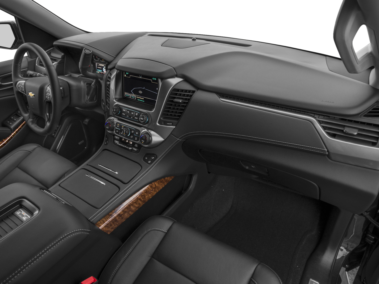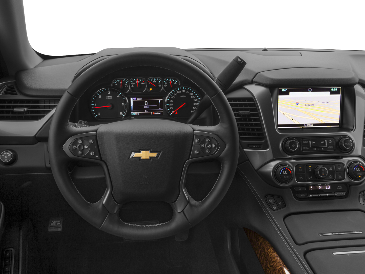 SUN, ENTERTAINMENT AND DESTINATIONS PACKAGE, (CF5) power sunroof, (U42) rear seat DVD entertainment system and (IO6) Chevrolet MyLink radio with navigation, ENTERTAINMENT SYSTEM, REAR SEAT, BLU-RAY/DVD with remote control, overhead display, four 2-channel wireless infrared headphones and auxiliary audio/video input jacks and USB port, WHEELS, 20 X 9 (50.8 CM X 22.9 CM) CHROME, SEATS, FRONT BUCKET WITH PERFORATED LEATHER-APPOINTED HEATED AND COOLED SEAT CUSHIONS 12-way power driver and passenger seat includes 6-way power cushions, driver seat 2-position memory, 4-way power lumbar control and power recline (STD), AUDIO SYSTEM, CHEVROLET MYLINK RADIO WITH NAVIGATION AND 8 DIAGONAL COLOR TOUCH-SCREEN AM/FM stereo with seek-and-scan and digital clock, includes Bluetooth® streaming audio for music and select phones; voice-activated technology for radio and phone; featuring Apple CarPlay® capability for compatible phone; includes 5 USB ports and 1 auxiliary jack (STD), ENGINE, 5.3L V8 ECOTEC3 WITH ACTIVE FUEL MANAGEMENT, DIRECT INJECTION AND VARIABLE VALVE TIMING includes aluminum block construction (355 hp [265 kW] @ 5600 rpm, 383 lb-ft of torque [518 N-m] @ 4100 rpm) (STD), TRANSMISSION, 6-SPEED AUTOMATIC, ELECTRONICALLY CONTROLLED with overdrive and tow/haul mode (STD). Chevrolet LTZ with Black exterior and Cocoa/Mahogany interior features a 8 Cylinder Engine with 355 HP at 5600 RPM*.