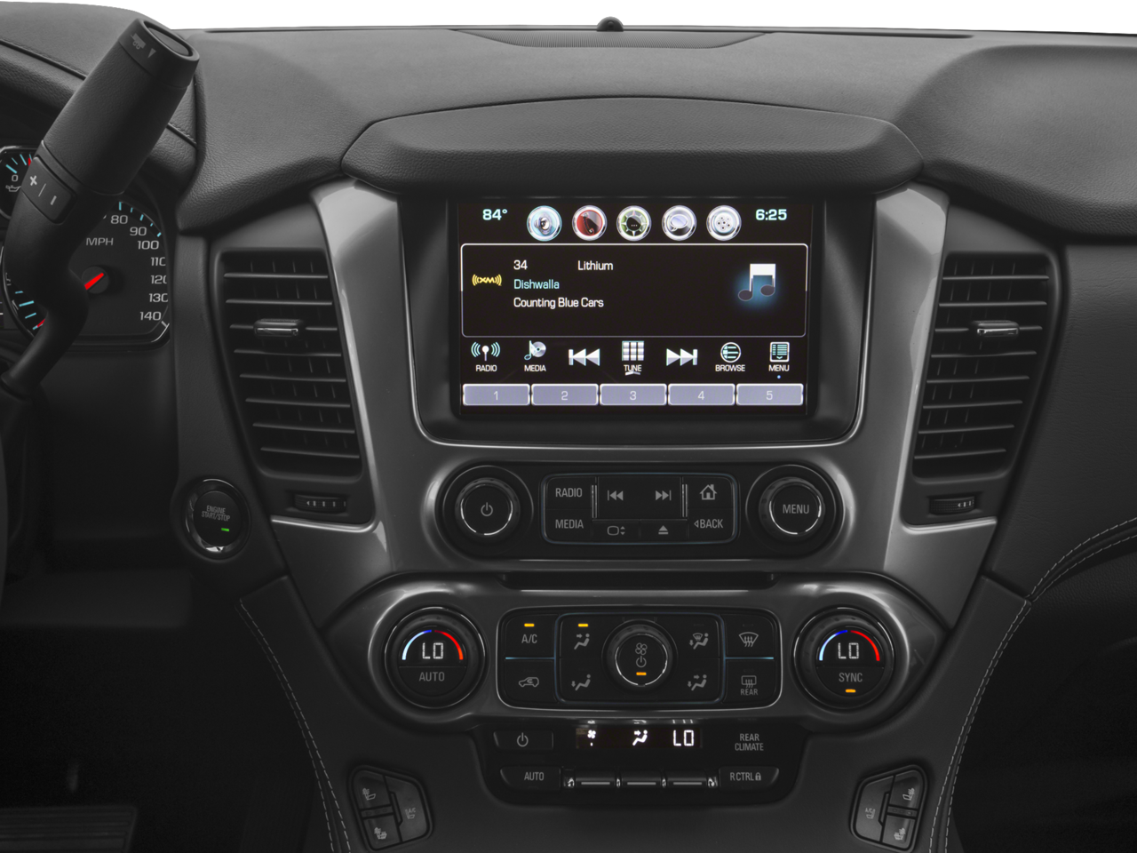 - Audio system, Chevrolet MyLink Radio with Navigation and 8" diagonal color touch-screen AM/FM stereo with seek-and-scan and digital clock, includes Bluetooth® streaming audio for music and select phones; voice-activated technology for radio and phone; featuring Apple CarPlay capability for compatible phone; includes 5 USB ports and 1 auxiliary jack (See "gmtotalconnect.com" for phone compatibility information.)