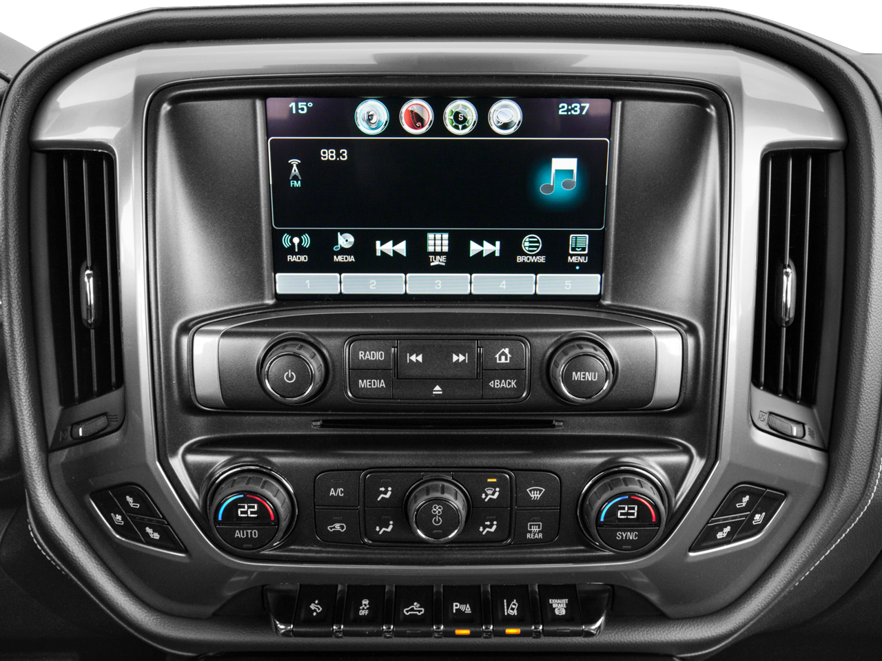 - Audio system, Chevrolet MyLink Radio with Navigation and 8" diagonal color touch-screen, AM/FM stereo with seek-and-scan and digital clock, includes Bluetooth® streaming audio for music and select phones; USB ports; auxiliary jack; voice-activated technology for radio and phone; and Shop with the ability to browse, select and install apps to your vehicle. Apps include Pandora, iHeartRadio, The Weather Channel and more.