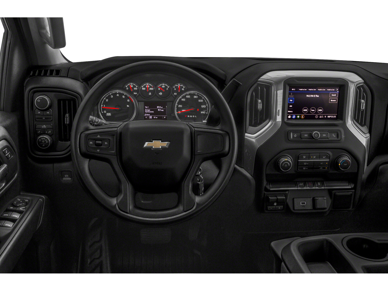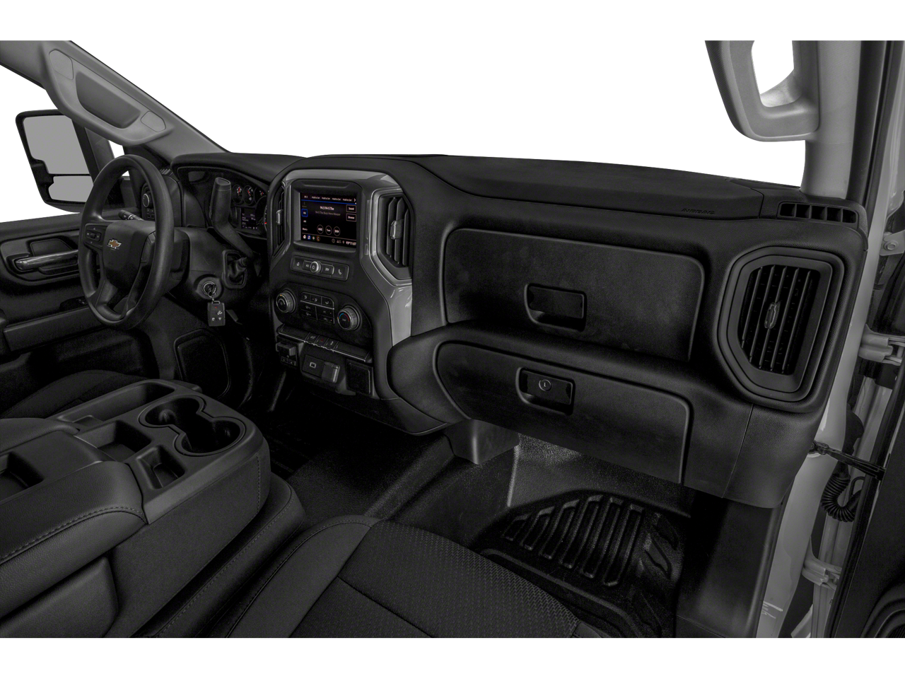WT CONVENIENCE PACKAGE includes (AQQ) Remote Keyless Entry, (QT5) EZ Lift power lock and release tailgate, (AKO) tinted windows, (C49) rear-window defogger, (K34) cruise control, (DBG) power trailer mirrors with heated upper glass and manual extending/folding; AUDIO SYSTEM, CHEVROLET INFOTAINMENT 3 SYSTEM 7 diagonal color touchscreen, AM/FM stereo. Additional features for compatible phones include: Bluetooth® audio streaming for 2 active devices, voice command pass-through to phone, Apple CarPlay® and Android Auto® capable. (STD), ENGINE, 6.6L V8 with Direct Injection and Variable Valve Timing, gasoline, (401 hp [299 kW] @ 5200 rpm, 464 lb-ft of torque [629 N-m] @ 4000 rpm) (STD), TRANSMISSION, 6-SPEED AUTOMATIC, HEAVY-DUTY (STD). Chevrolet Work Truck with Silver Ice Metallic exterior and Jet Black interior features a 8 Cylinder Engine with 401 HP at 5200 RPM*.