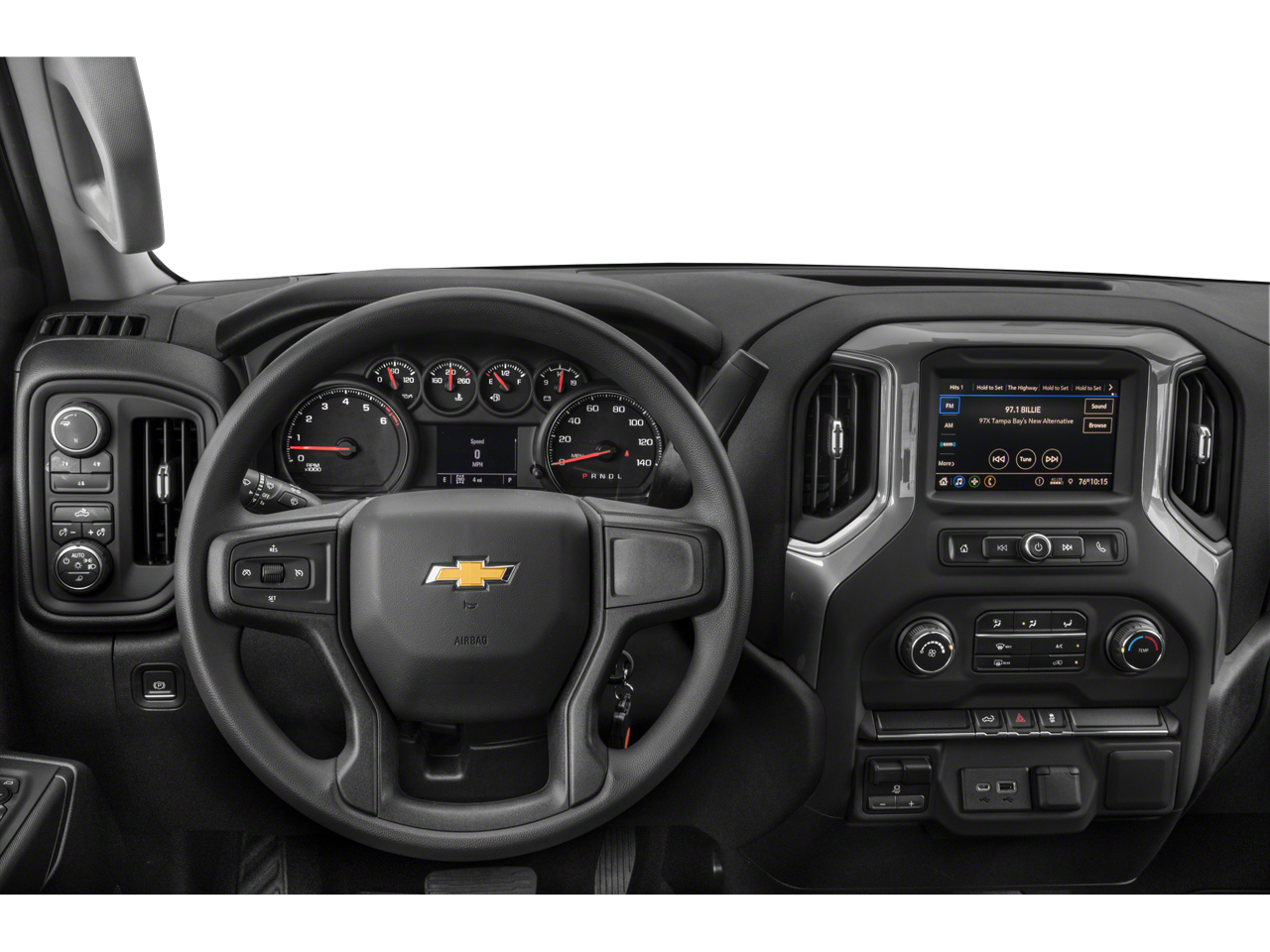 CUSTOM CONVENIENCE PACKAGE includes (BTV) Remote Start, (C49) rear-window defogger, (UF2) bed LED cargo area lighting, (QT5) EZ Lift power lock and release tailgate and (JL1) Trailer brake controller, LPO, OFF-ROAD ASSIST STEPS, 3 ROUND TUBULAR, BLACK (dealer-installed), INFOTAINMENT PACKAGE includes (U2K) SiriusXM Radio and (UE1) OnStar, AUDIO SYSTEM, CHEVROLET INFOTAINMENT 3 SYSTEM 7 diagonal color touchscreen, AM/FM stereo. Additional features for compatible phones include: Bluetooth® audio streaming for 2 active devices, voice command pass-through to phone, wired Apple CarPlay® and Android Auto® capable. (STD), ENGINE, 6.6L V8 with Direct Injection and Variable Valve Timing, gasoline, (401 hp [299 kW] @ 5200 rpm, 464 lb-ft of torque [629 N-m] @ 4000 rpm) (STD), TRANSMISSION, 6-SPEED AUTOMATIC, HEAVY-DUTY (STD). Chevrolet Custom with Summit White exterior and Jet Black interior features a 8 Cylinder Engine with 401 HP at 5200 RPM*.