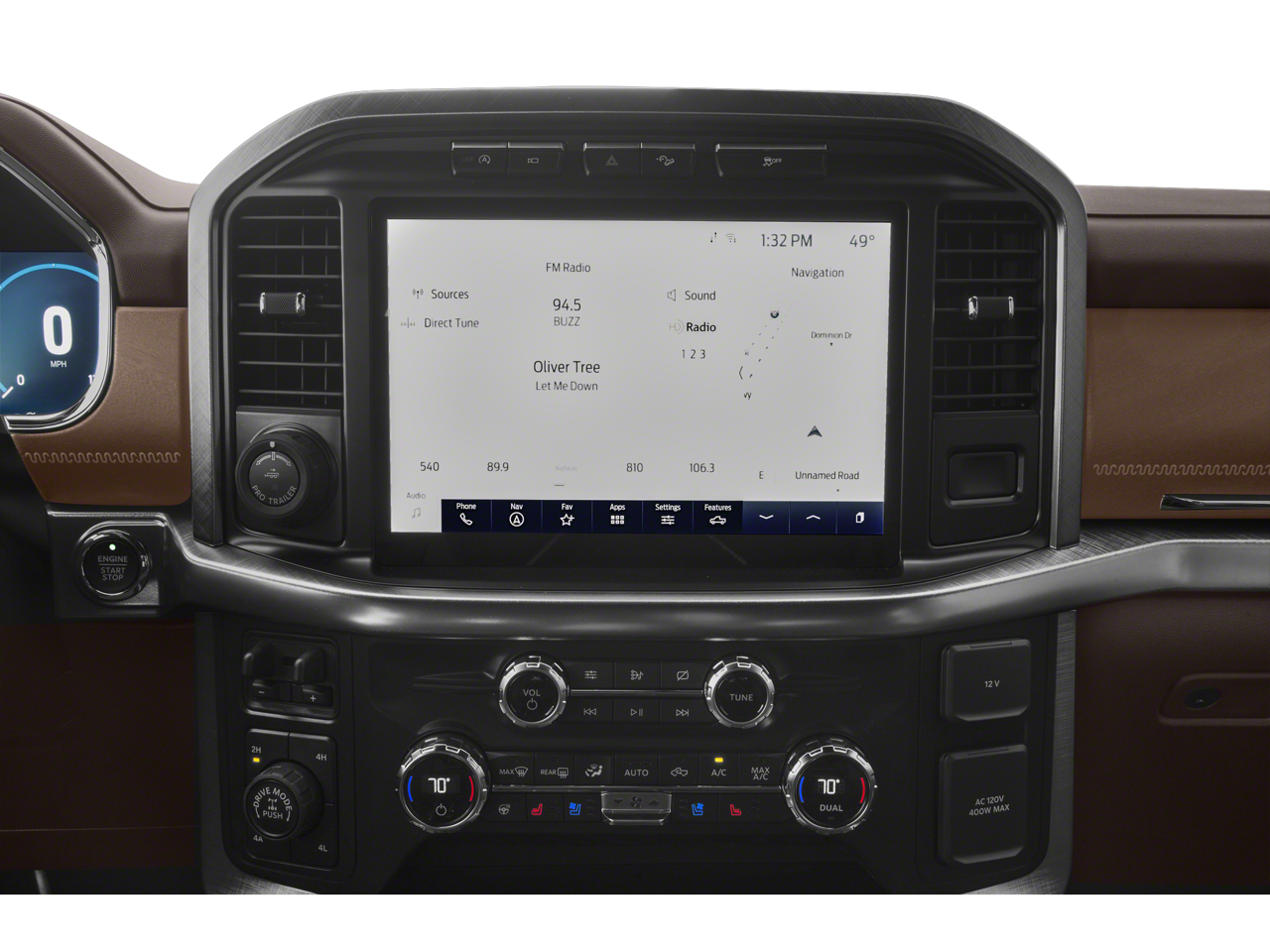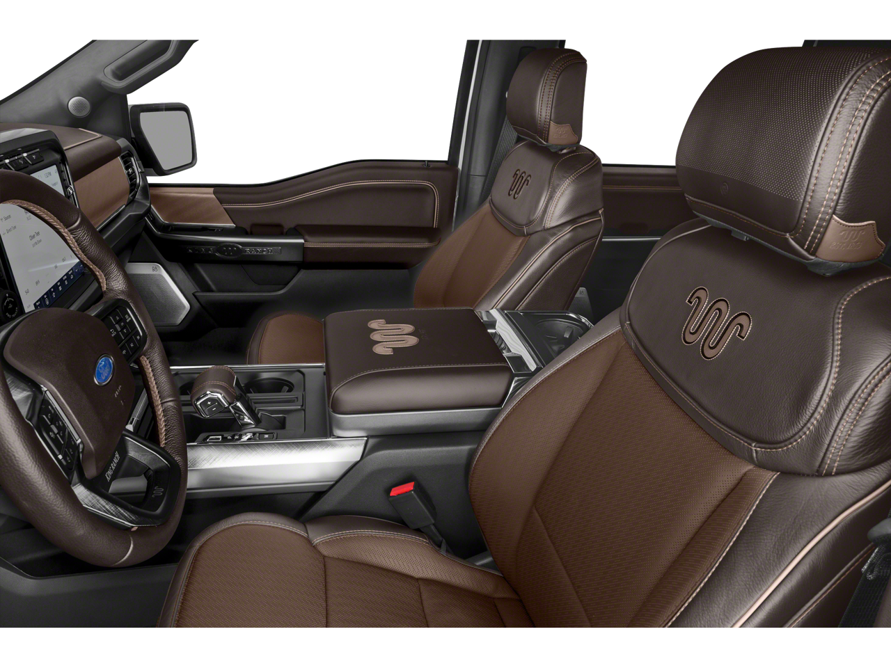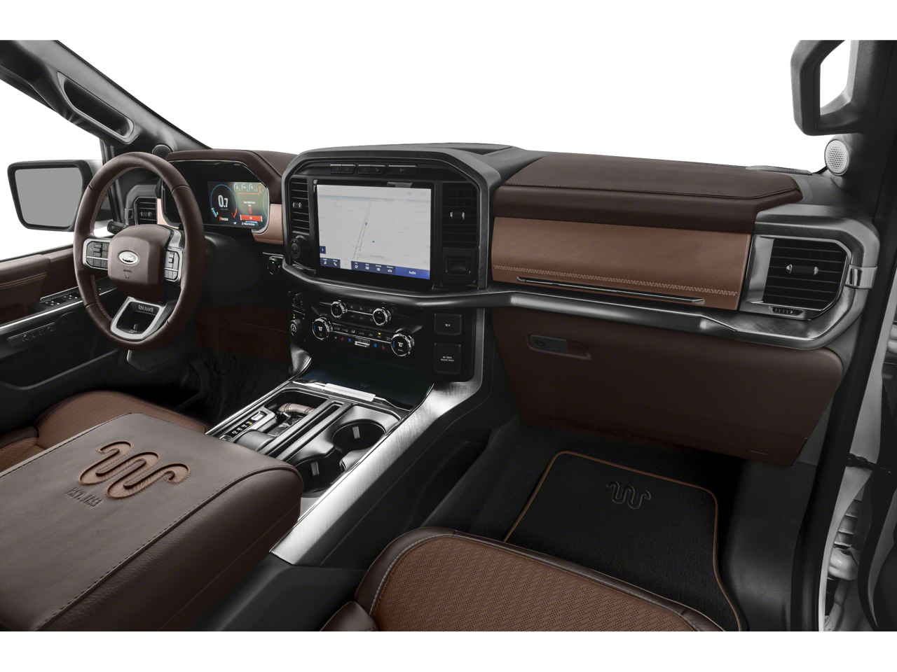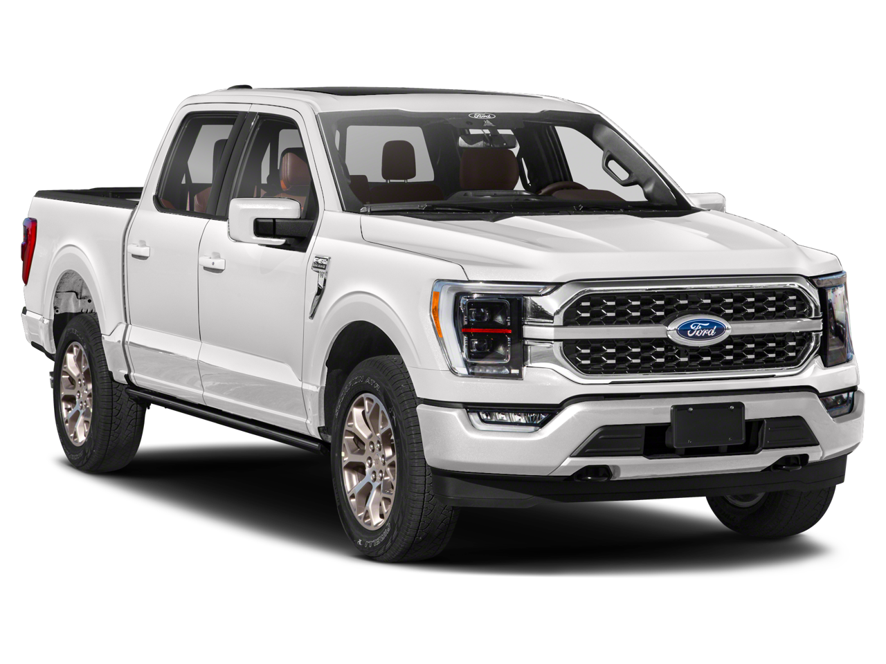 EQUIPMENT GROUP 601A HIGH Radio: B&O Unleashed Sound System by Bang & Olufsen, HD Radio and 18 speakers including subwoofer, Tires: 275/60R20 OWL Automatic Transmission, 275/65R18 OWL all-terrain spare tire, Power-Deployable Running Boards, Replaces step bar, Wheels: 20 Machined-Aluminum, light Caribou painted pockets and King Ranch ornament, Bed Utility Package, BoxLink, 4 premium locking cleats, LED Box Lighting, Tailgate Step w/Tailgate Work Surface, Power Tailgate, Multi-Contour Driver & Passenger Seats, Active Motion, KING RANCH CHROME APPEARANCE PACKAGE 2 chrome front tow hooks and tailgate applique, Chrome Door Handles w/Body-Color Strap, Front & Rear Chrome Bumpers, Bright Belt Moldings, Tires: 275/60R20 OWL Automatic Transmission, 275/65R18 OWL all-terrain spare tire, Wheels: 20 Chrome-Like PVD, King Ranch wheel ornament, Chrome Skull Caps on Exterior Mirrors, 360 DEGREE CAMERA trailer reverse guidance, ENGINE: 3.5L V6 ECOBOOST, TOUGH BED SPRAY-IN BEDLINER, TRANSMISSION: ELECTRONIC 10-SPEED AUTOMATIC selectable drive modes: normal, ECO, sport, tow/haul, slippery, deep snow/sand and mud/rut (STD). Ford King Ranch with Star White Metallic Tri-Coat/Stone Gray exterior and Java interior features a V6 Cylinder Engine with 400 HP at 6000 RPM*.