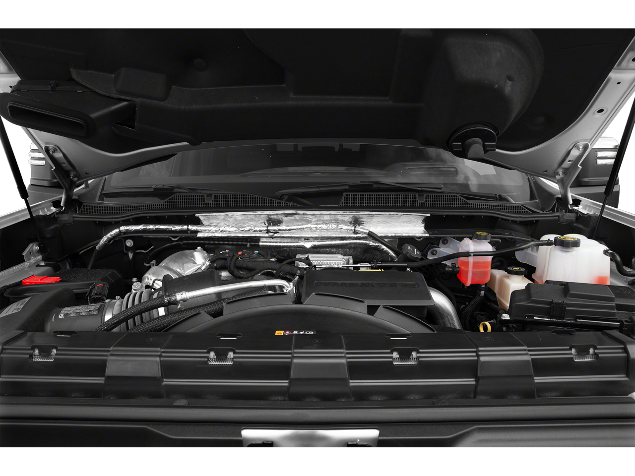 ENGINE, DURAMAX 6.6L TURBO-DIESEL V8, B20-DIESEL COMPATIBLE (445 hp [332 kW] @ 2800 rpm, 910 lb-ft of torque [1220 Nm] @ 1600 rpm), TECHNOLOGY PACKAGE includes (DRZ) Rear Camera Mirror and (UV6) 15 Diagonal Head-Up Display, SUNROOF, POWER ON CREW CAB MODELS, SAFETY PACKAGE II includes (UEU) Forward Collision Alert, (UFL) Lane Departure Warning, (UHY) Automatic Emergency Braking, (TQ5) IntelliBeam headlamps, (UE4) Following Distance Indicator and (HS1) Safety Alert Seat, GVWR, 14,000 LBS. (6350 KG) WITH DUAL REAR WHEELS, AUDIO SYSTEM, CHEVROLET INFOTAINMENT 3 PREMIUM SYSTEM WITH CONNECTED NAVIGATION, 8 DIAGONAL HD COLOR TOUCHSCREEN, AM/FM STEREO Bluetooth® audio streaming for 2 active devices, wireless Apple CarPlay® and Android Auto® capable, enhanced voice recognition, additional memory for in-vehicle apps, cloud connected personalization for select infotainment and vehicle settings. Subscription required for enhanced and connected services after trial period. (STD) (Includes (PZ8) Hitch Guidance with Hitch View.), TRANSMISSION, ALLISON 10-SPEED AUTOMATIC. Chevrolet High Country with Cherry Red Tintcoat exterior and Jet Black/Umber interior features a 8 Cylinder Engine with 401 HP at 5200 RPM*.
