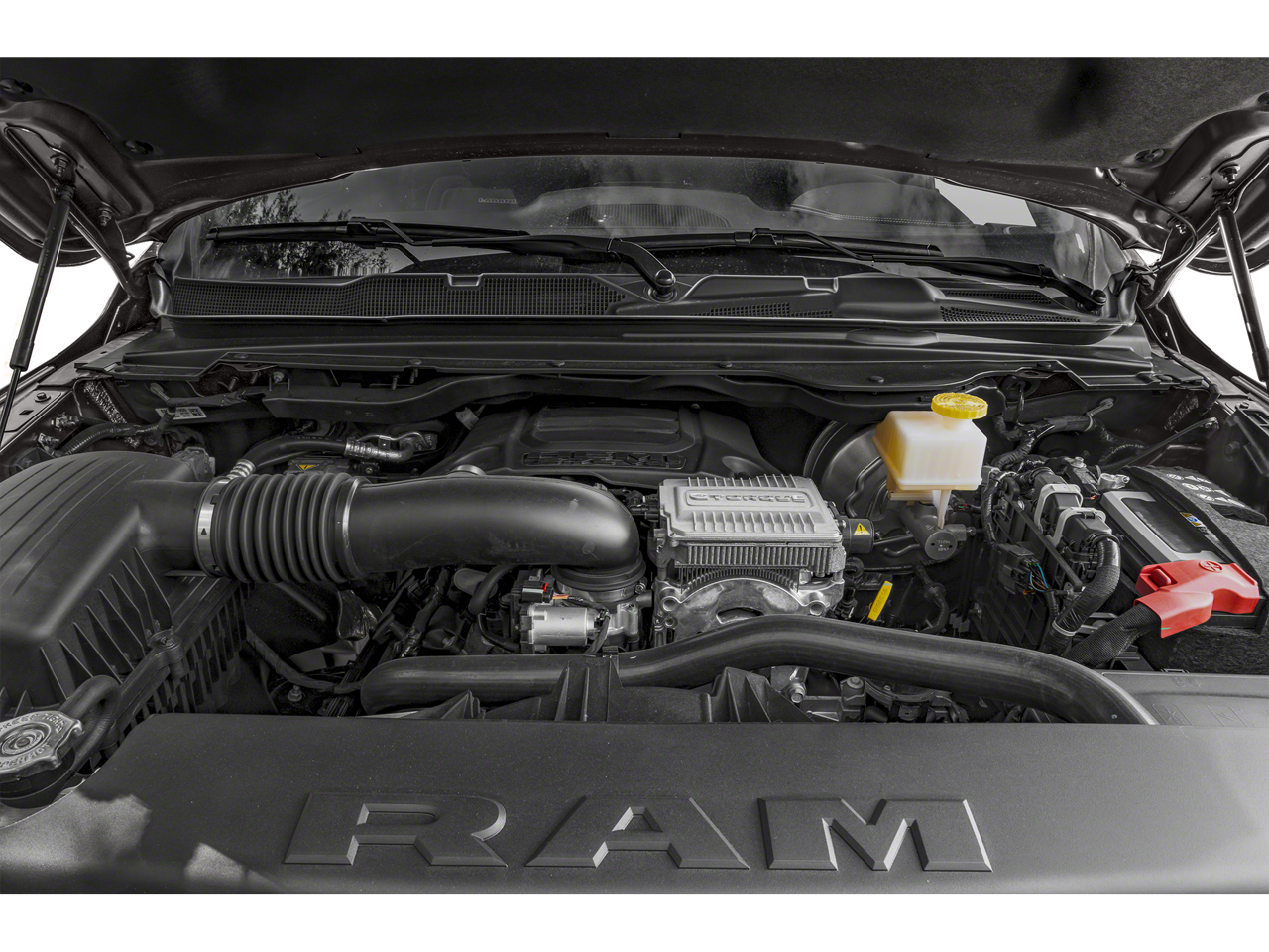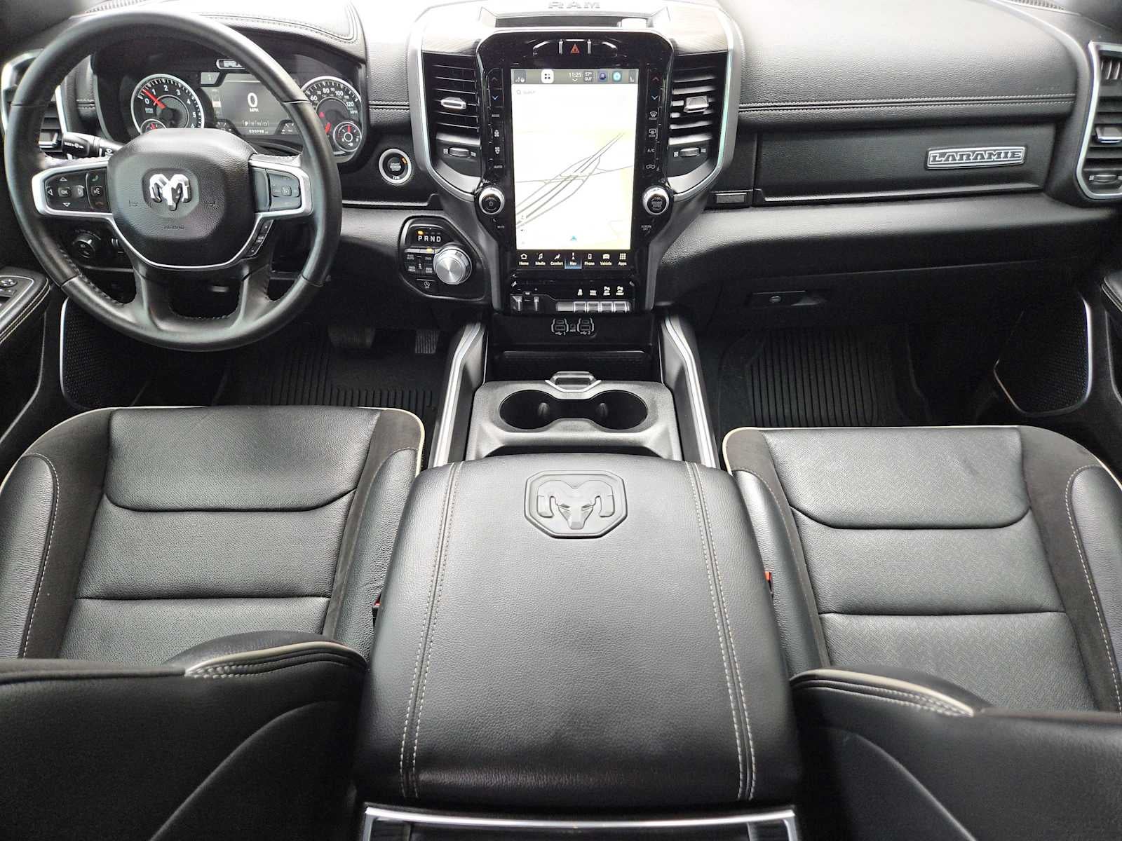 ENGINE: 5.7L V8 HEMI MDS VVT ETORQUE Active Noise Control System, Heavy Duty Engine Cooling, Passive Tuned Mass Damper, GVWR: 7,100 lbs, Dual Rear Exhaust w/Bright Tips, HEMI Badge, 23 Gallon Fuel Tank, 18 Aluminum Spare Wheel, LARAMIE LEVEL 1 EQUIPMENT GROUP Rear Window Defroster, Blind Spot & Cross Path Detection, Rain Sensitive Windshield Wipers, ParkSense Front/Rear Park Assist w/Stop, Rear Power Sliding Window, 12 Touchscreen Display, Front LED Fog Lamps, LED Reflector Headlamps, Foam Bottle Insert (Door Trim Panel), Radio: Uconnect 5 Nav w/12.0 Display, Remote Tailgate Release, Auto High Beam Headlamp Control, Electric Shift On Demand Transfer Case, Front Door Accent Lighting, 2nd Row In Floor Storage Bins, Rear Door Accent Lighting, BLACK, LEATHER TRIMMED BUCKET SEATS Bucket Seats, Center Console Parts Module, Full Length Upgraded Floor Console, CLASS IV RECEIVER HITCH, TRANSMISSION: 8-SPEED AUTOMATIC (8HP75). Ram Laramie with Ivory White Tri-Coat Pearlcoat exterior and Black interior features a 8 Cylinder Engine with 395 HP at 5600 RPM*.