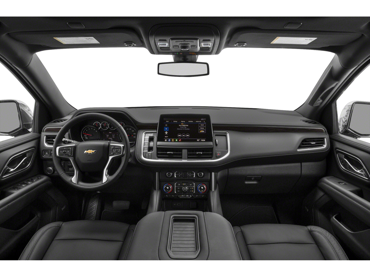 LUXURY PACKAGE includes (WPD) Driver Alert Package content, (UV2) HD Surround Vision, (UKK) Rear Pedestrian Alert, (A45) memory settings, (DXR) outside heated power-adjustable, power-folding, body-color mirrors with driver-side auto-dimming and integrated turn signal indicators, (N38) power tilt and telescopic steering column, (KI3) heated steering wheel, (KA6) second row outboard heated seats, (ATT) second row power 60/40 split-folding bench seats and (AS8) third row power 60/40 split-folding bench seats, REAR SEAT MEDIA SYSTEM includes dual rear seat-mounted 12.6 diagonal color-touch LCD HD screens, two Bluetooth® headphones with 2 HDMI ports on the back of the center console, WHEELS, 20 X 9 (50.8 CM X 22.9 CM) PAINTED ALUMINUM WITH MACHINE FACE AND ARGENT METALLIC POCKETS, SEATS, SECOND ROW BUCKET, POWER RELEASE, AUDIO SYSTEM, CHEVROLET INFOTAINMENT 3 PREMIUM SYSTEM WITH GOOGLE BUILT-IN COMPATABILITY (select service plan required, terms and limitations apply), including nav capability, 10.2 diagonal HD color touchscreen, includes multi-touch display, AM/FM stereo, Bluetooth® streaming audio for music and most phones; featuring wireless Apple CarPlay® and wireless Android Auto® capability for compatible phones, advanced voice recognition, in-vehicle apps, personalized profiles for infotainment and vehicle settings (STD), STEERING WHEEL, HEATED, ENGINE, 5.3L ECOTEC3 V8 with Dynamic Fuel Management, Direct Injection and Variable Valve Timing, includes aluminum block construction (355 hp [265 kW] @ 5600 rpm, 383 lb-ft of torque [518 Nm] @ 4100 rpm) (STD), TRANSMISSION, 10-SPEED AUTOMATIC electronically controlled with overdrive, includes Traction Select System including tow/haul (STD), DRIVER ALERT PACKAGE includes (UKC) Lane Change Alert with Side Blind Zone Alert and (UFG) Rear Cross Traffic Alert. Chevrolet LT with BLACK exterior and JET BLACK interior features a 8 Cylinder Engine with 355 HP at 5600 RPM*.