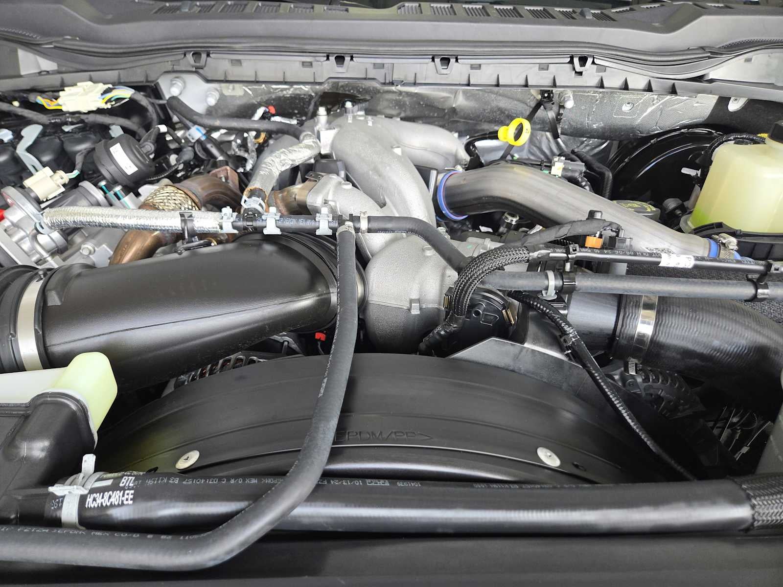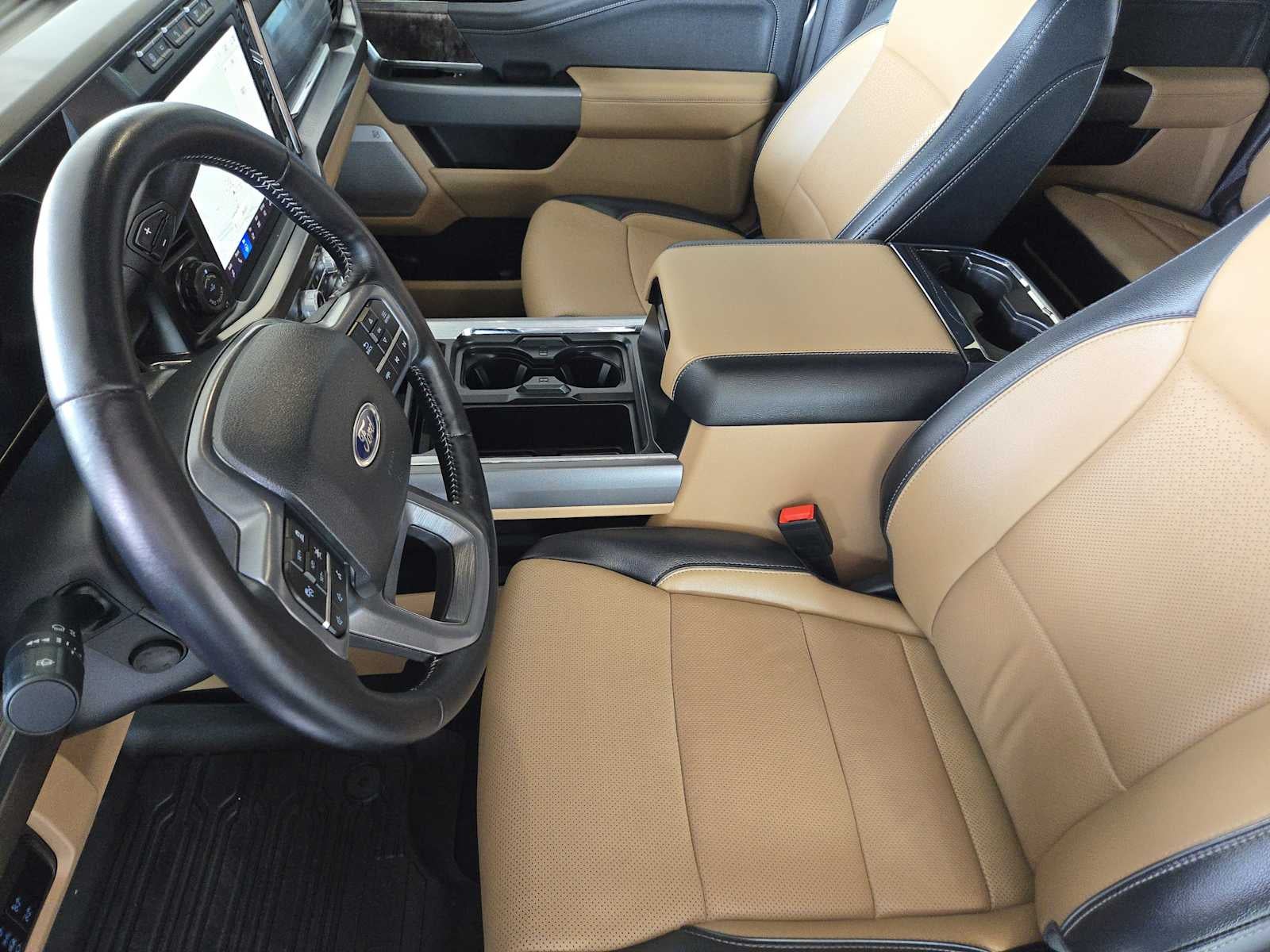 ENGINE: 6.7L 4V OHV POWER STROKE V8 TURBO DIESEL B20 manual push-button engine-exhaust braking, Operator Commanded Regeneration (OCR) and intelligent oil-life monitor, 250 Amp Alternator, 34 Gallon Fuel Tank, 3.31 Axle Ratio, Dual 68 AH/65 AGM Batteries, LARIAT ULTIMATE PACKAGE Wireless Charging Pad, Front Sensing System, Tailgate Step & Handle, Intelligent Adaptive Cruise Control w/Stop-and-Go, lane centering and speed sign recognition, Radio: B&O Unleashed Sound System by Bang & Olufsen, HD Radio w/14 speakers including subwoofer, Pro Trailer Hitch Assist, Ford Co-Pilot 360 2.0, rear view camera, reverse brake assist and reverse sensing system, Lane-Keeping System, lane-keeping alert, lane-keeping aid and driver alert, Pre-Collision Assist, Automatic Emergency Braking (AEB), pedestrian detection, forward collision warning, dynamic brake support and intersection assist, Post-Collision Braking, Automatic High Beam, BLIS w/Cross-Traffic Alert, trailer coverage, Upfitter Switches (6), Located in overhead console, 4-Way Adjustable Headrests, SPORT APPEARANCE PACKAGE dark fender badge, Black Tow Hooks, Wheels: 20 Dark Carbonized Gray Painted Aluminum, High-gloss, matte black hub covers/center ornaments, Body-Color Front & Rear Bumpers, Tires: LT275/65Rx20E BSW Automatic Transmission, Spare may not be the same as road tire, Sport 4x4 Box Side Decal, Dark Painted Grille, Platform Running Boards, Chrome Exhaust Tip, TWIN PANEL POWER MOONROOF map lights and moonroof switches, ELECTRONIC-LOCKING W/3.31 AXLE RATIO, TRANSMISSION: TORQSHIFT 10-SPEED AUTOMATIC SelectShift and selectable drive modes: normal, eco, slippery roads, tow/haul and off-road (STD). Ford LARIAT with Iconic Silver exterior and Baja interior features a 8 Cylinder Engine with 475 HP at 2600 RPM*.