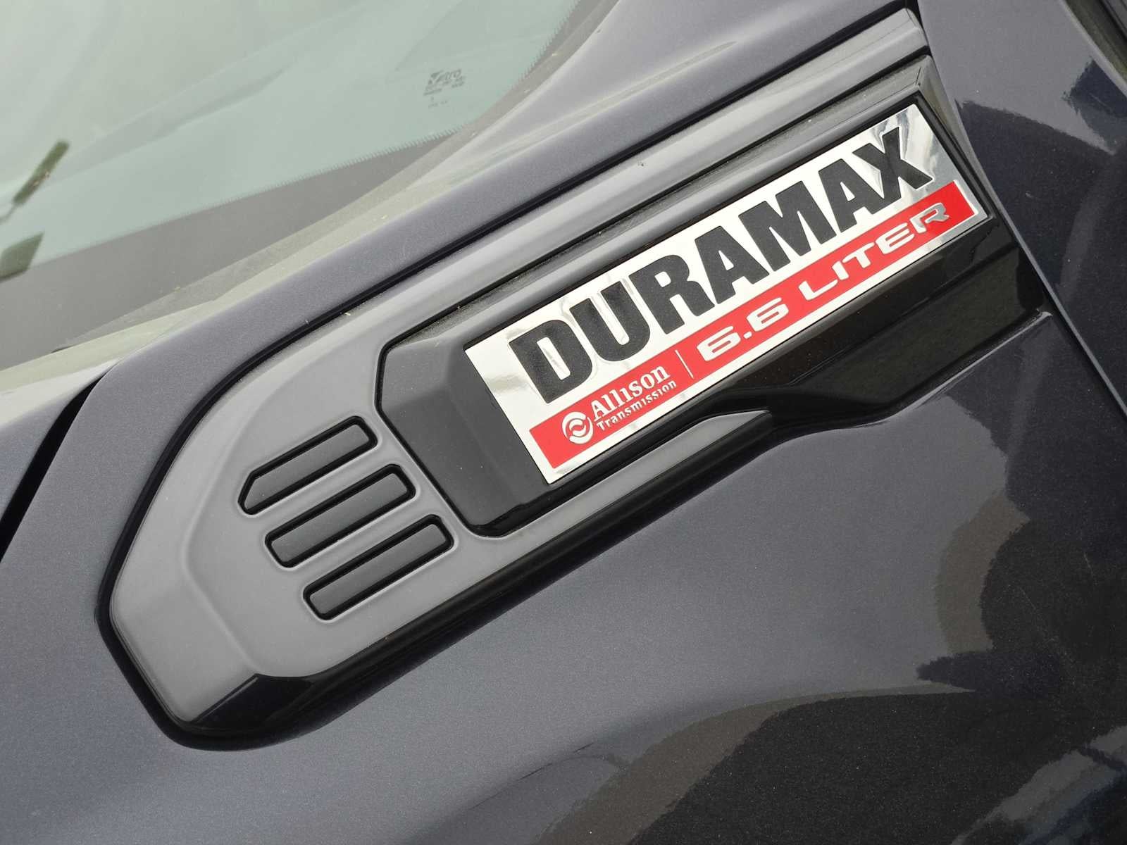 ENGINE, DURAMAX 6.6L TURBO-DIESEL V8, B20-DIESEL COMPATIBLE (470 hp [350.5 kW] @ 2800 rpm, 975 lb-ft of torque [1322 Nm] @ 1600 rpm) (Includes (K05) engine block heater.), AT4 PREMIUM PLUS PACKAGE includes (PDO) AT4 Preferred Package, (CF5) power sunroof, (CWM) Technology Package and (VXW) AT4 high clearance step, LPO, TECHNOLOGY PACKAGE includes (DRZ) Rear Camera Mirror and (UV6) Multicolor 15 Diagonal Head-Up Display, AT4 PREFERRED PACKAGE includes (UG1) Universal Home Remote, (A48) rear sliding power window, (U01) Roof Marker Lamps and (KSG) adaptive Cruise Control, LPO, HITCH PACKAGE Gooseneck ball and chain tiedown kit with case, (dealer-installed), ASSIST STEPS, POWER RETRACTABLE, BLACK includes LED lighting, AUDIO SYSTEM, 13.4 DIAGONAL PREMIUM GMC INFOTAINMENT SYSTEM WITH GOOGLE BUILT IN APPS SUCH AS NAVIGATION AND VOICE ASSISTANCE includes color touch-screen, multi-touch display, AM/FM stereo, Bluetooth® streaming audio for music and most phones; featuring wireless Android Auto® and Apple CarPlay® capability for compatible phones (STD), TRANSMISSION, ALLISON 10-SPEED AUTOMATIC. GMC AT4 with Titanium Rush Metallic exterior and Jet Black with Kalahari accents interior features a 8 Cylinder Engine with 470 HP at 2800 RPM*.