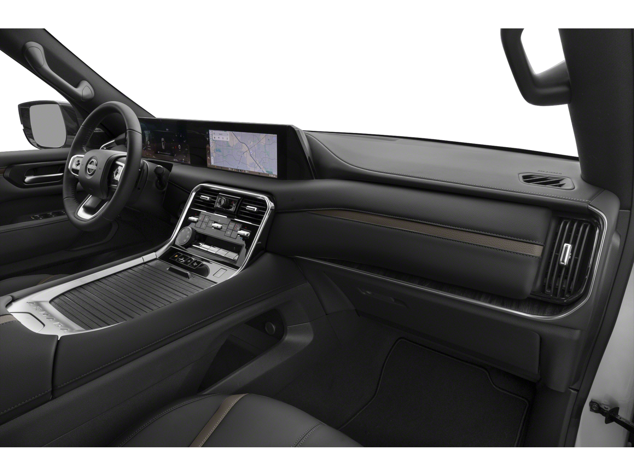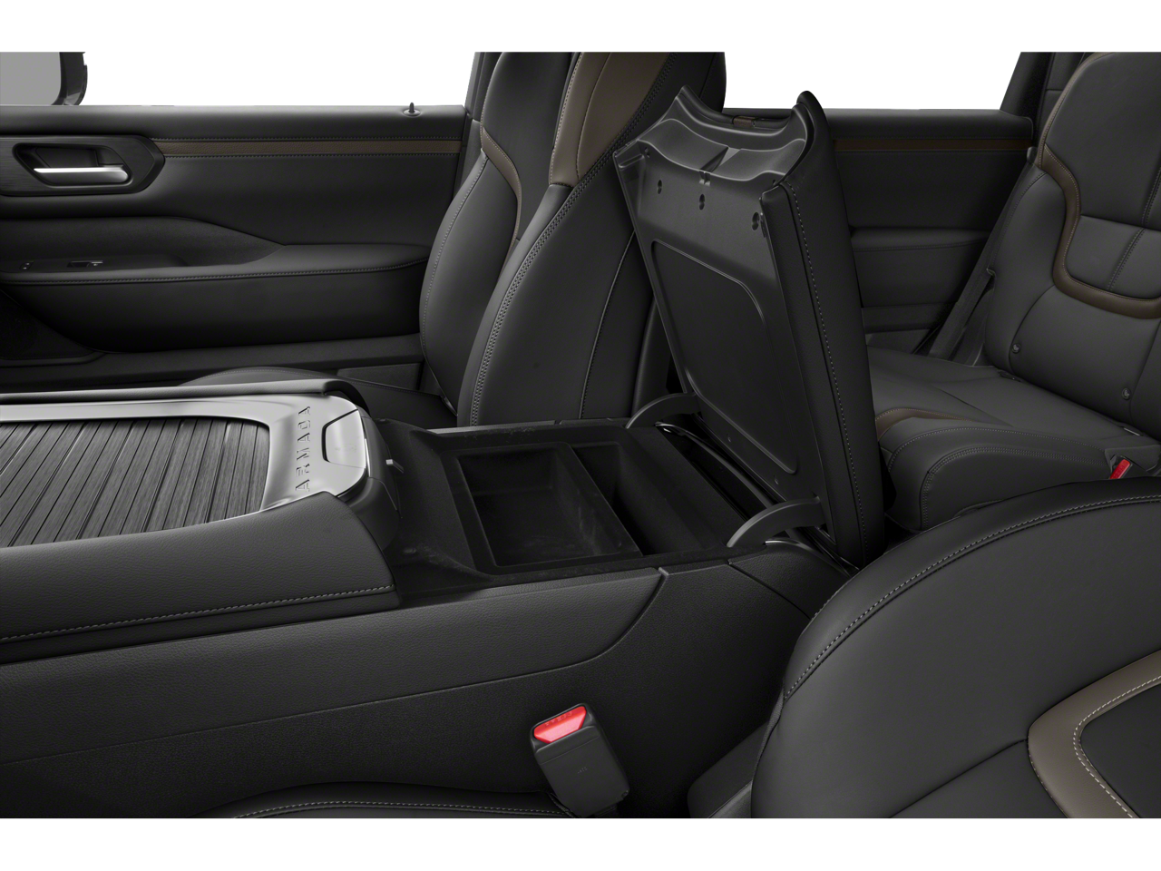CAPTAINS CHAIR SEAT PACKAGE Replaces 2nd-row split-bench seat, Passenger capacity decreases from 8 to 7, 2nd Row Outboard Captains Chairs w/Armrests, 2nd Row Center Console w/2 Cupholders, EZ Flex 2nd-Row Seating System w/1-Touch Release. Nissan SL with Super Black exterior and Charcoal interior features a V6 Cylinder Engine with 425 HP at 5600 RPM*.